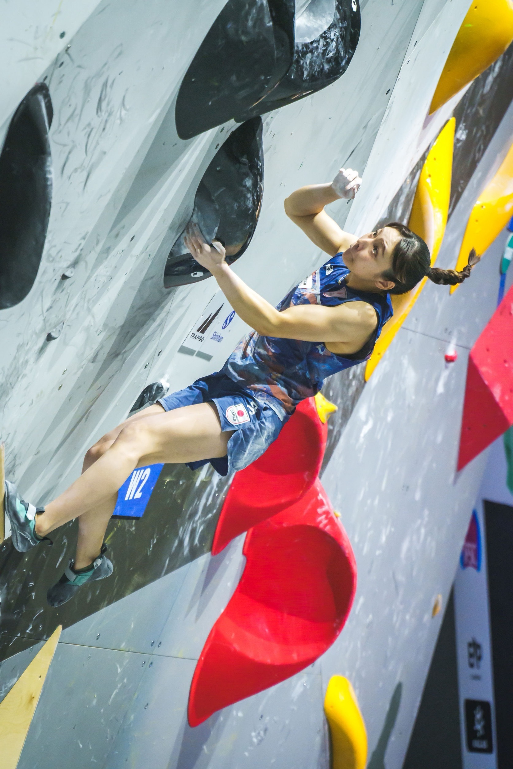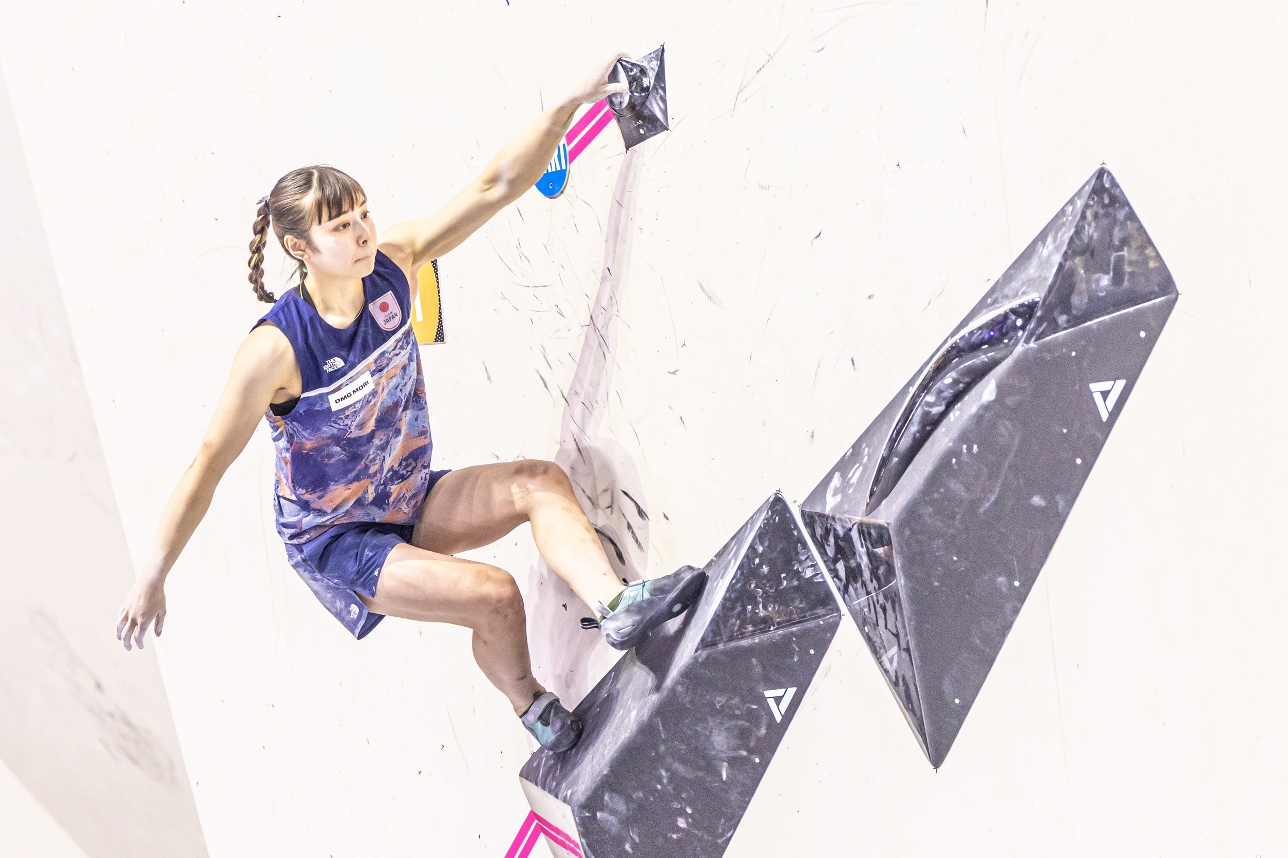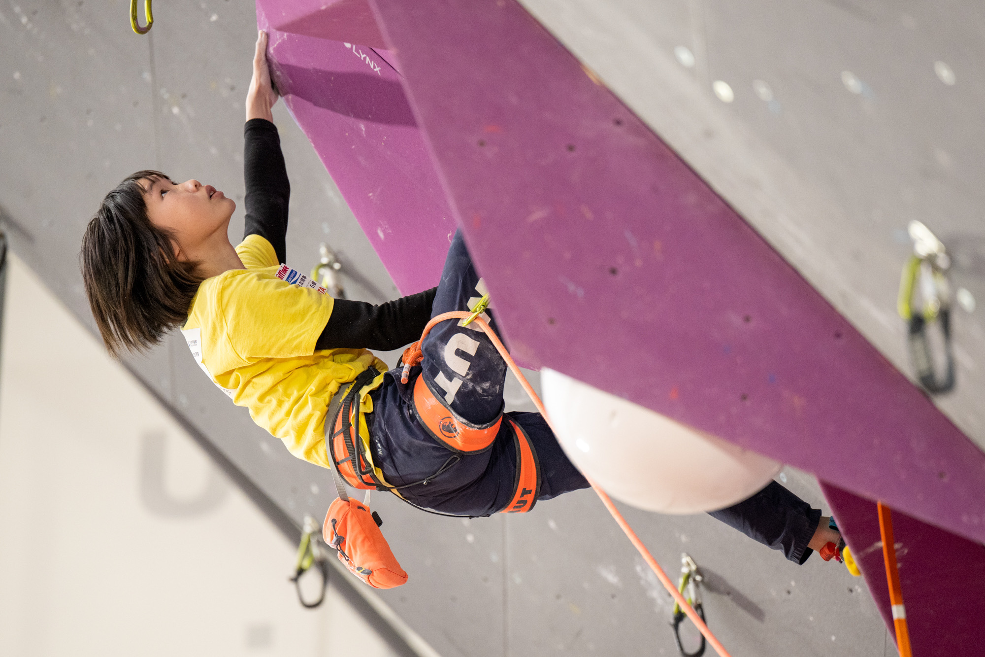 スポーツクライミングは、人工の壁に設置されたホールド(突起物)を使って登る競技。自然の岩を登るロッククライミングから派生し、より競技性を高めたスポーツ。